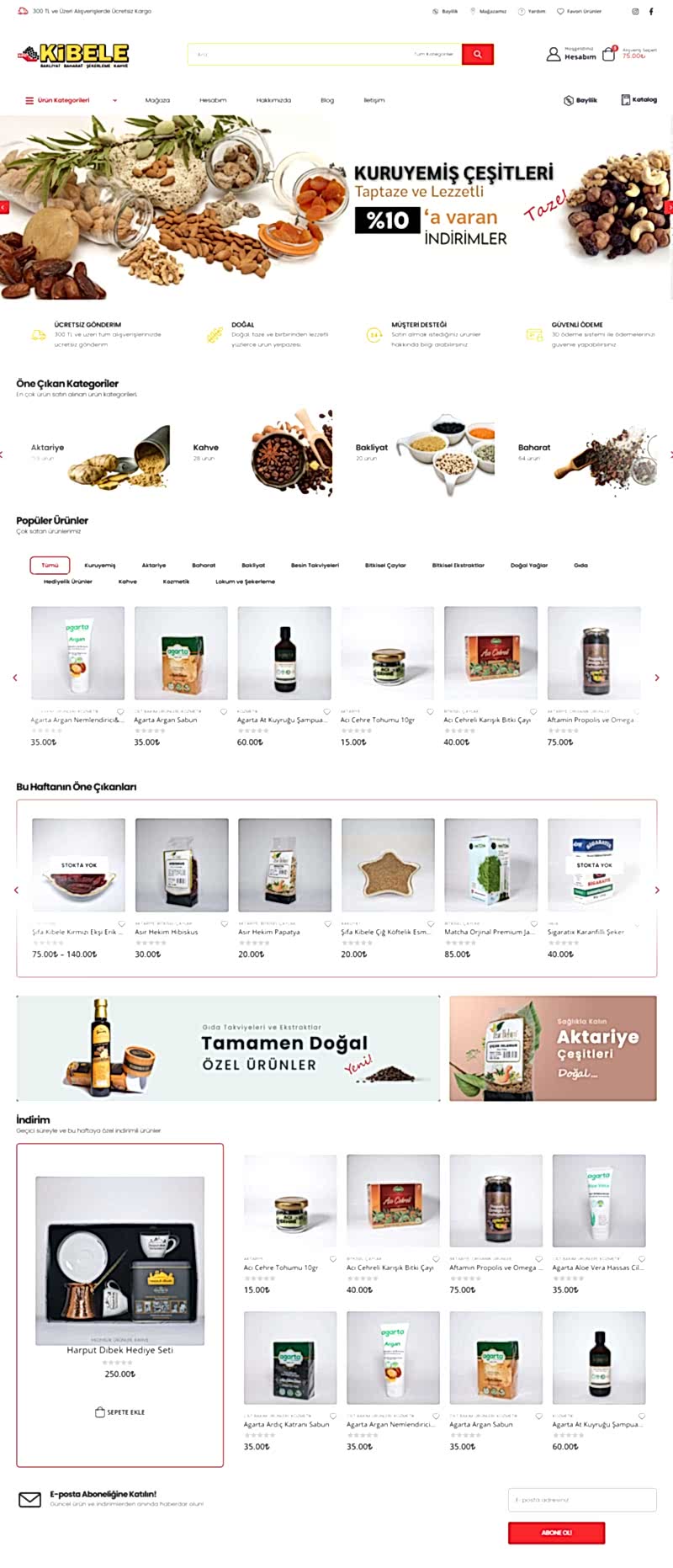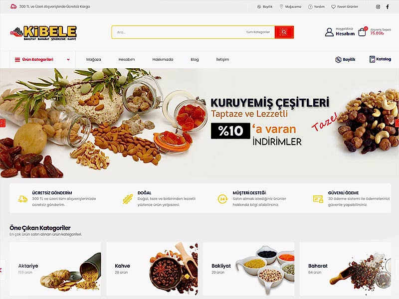 Ankara merkezli olarak gıda takviyeleri, ekstraktlar, kuruyemiş, kuru bakliyat ve aktariye ürünleri satan firma için hazırlanan güvenli e-ticaret sitesi.
